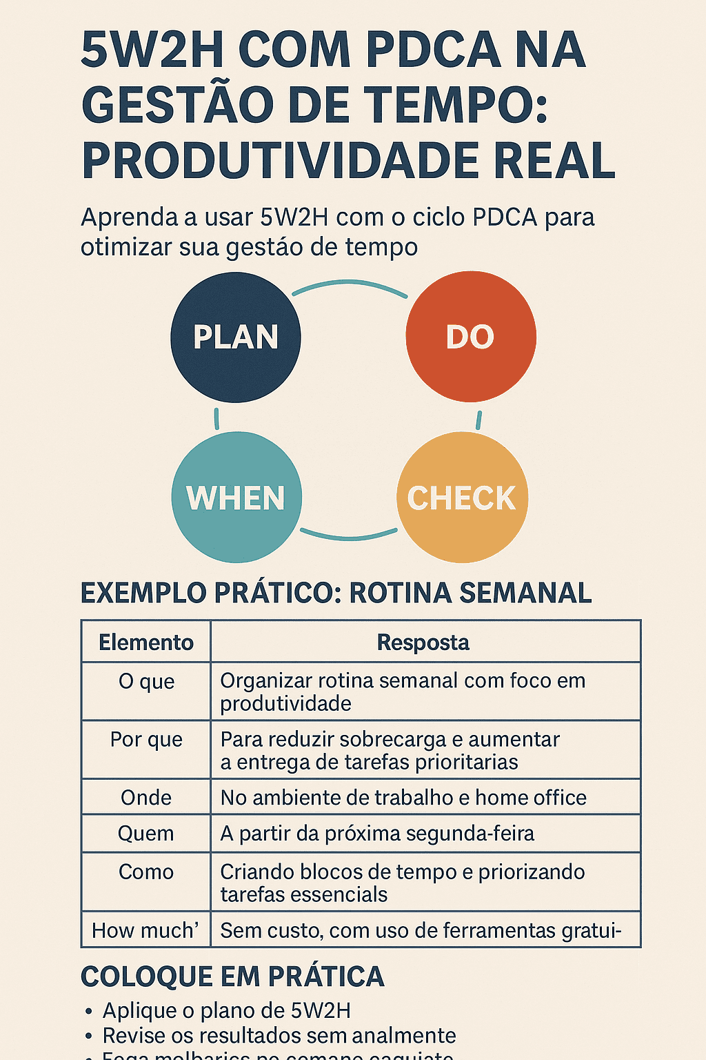 Neste artigo, você vai aprender como usar 5W2H com PDCA para otimizar sua gestão de tempo de forma prática, estratégica e sustentável.